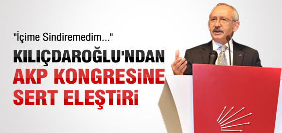 AKP’nin kongresini değerlendiren CHP Genel Başkanı Kemal Kılıçdaroğlu, ‘”u kurultay Türk demokrasi tarihinin kara bir sayfasıdır. Medyaya ambargo uygulanmıştır. Bunu içime sindiremiyorum” açıklamasında bulundu.