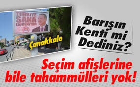Çanakkale’nin değişik bölgelerinde Cumhurbaşkanlığı seçimleri propagandaları kapsamında asılan Başbakan Recep Tayyip Erdoğan afişlerine kimliği belirlenemeyen şahıslar tarafından saldırılar düzenlendi.